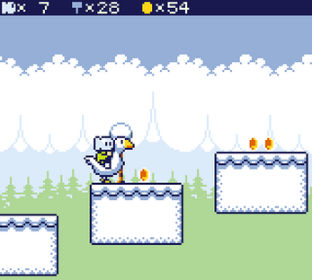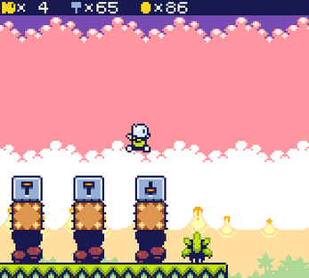The game is based around a big overworld with 50 doors. Most of these doors lead to levels, some to other locations. In most levels you have to collect usb-keys to open doors, find switches, collect hammers and defeat enemies. Some levels have light puzzles, others have mini bosses. The game has around 40 enemies and other dangers. You can get new moves (like wall-jumping and swimming) in labs, opening new parts of the game. In some levels you get help from a goose, which somehow stumbled into the game. He will fly you to places, or you can ride him when he is too lazy to fly.